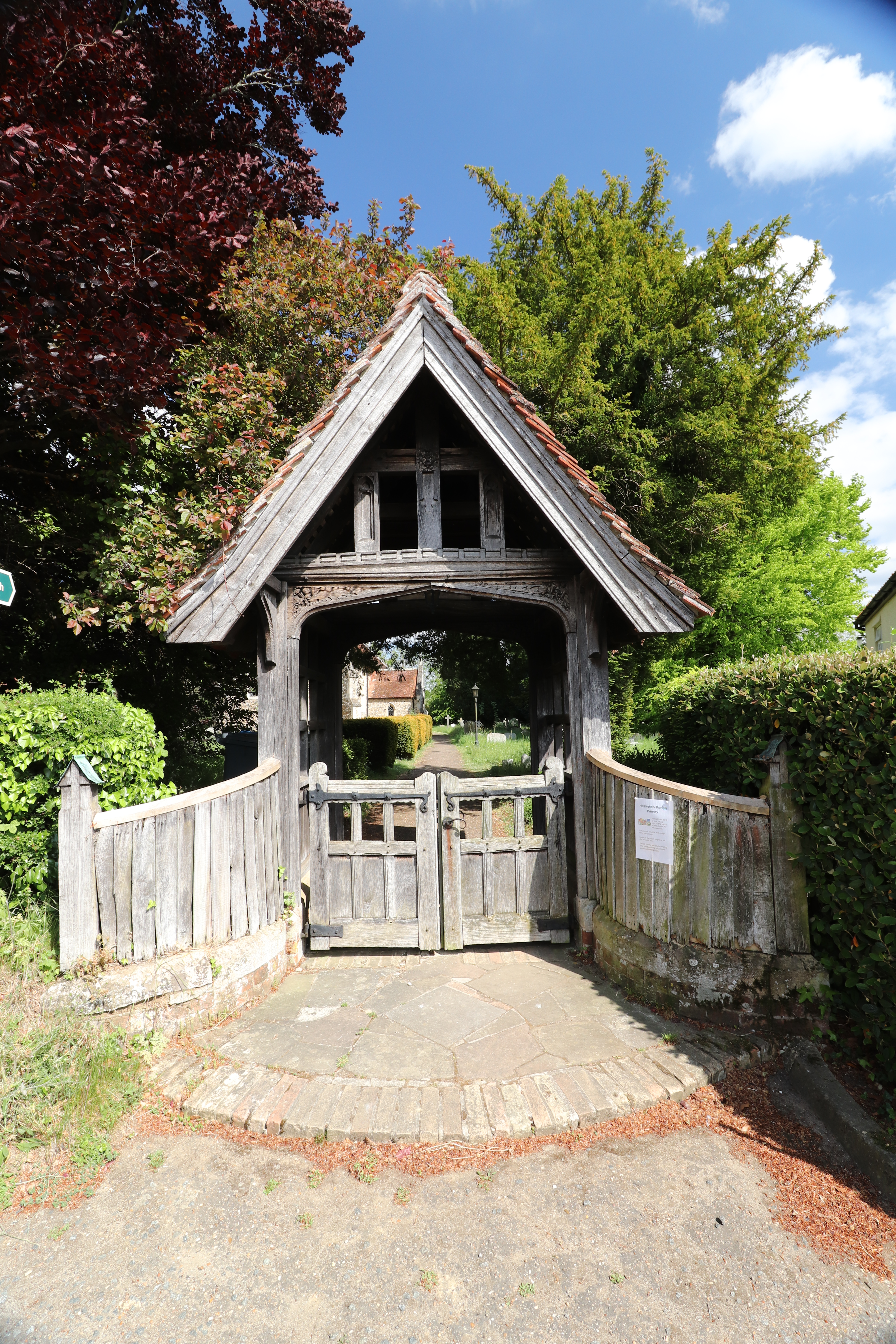 A particularly important thing about Hasketon, is that it is NOT Hacheston. The fine village of Hacheston is a completely different place about 6 miles away on the road to Framlingham. This has caused lots of confusion over the years, most notably the erroneous claim that in 1640 the so called ‘great champion’, John Bull, was buried in a vault under the church, along with 12 swords and scabbards. The slab with his name on it in the floor of Hacheston church shows where he really is.