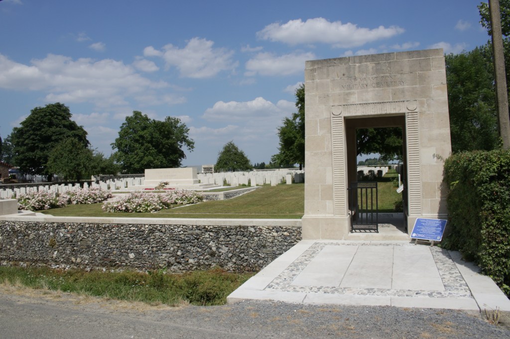 Unusually, the cemetery also contains the graves of some German soldiers. These men were buried in the spring of 1918 when the Germans occupied the area during their Spring 1918 offensive.