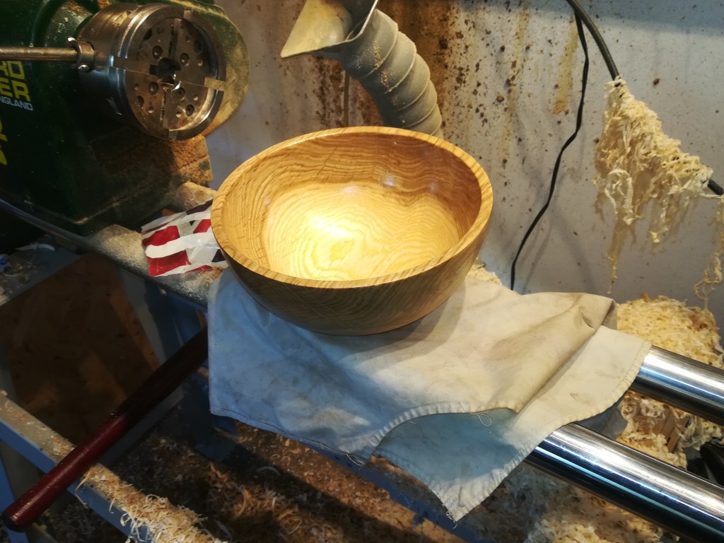 Wax can also be used, either on it’s own or as a final layer over an oil to increase the shine. This bowl has been finished with linseed oil, which I think works particularly well with oak. More recently I’ve purchased some buffing wheels which can create a nice shine if desired.
